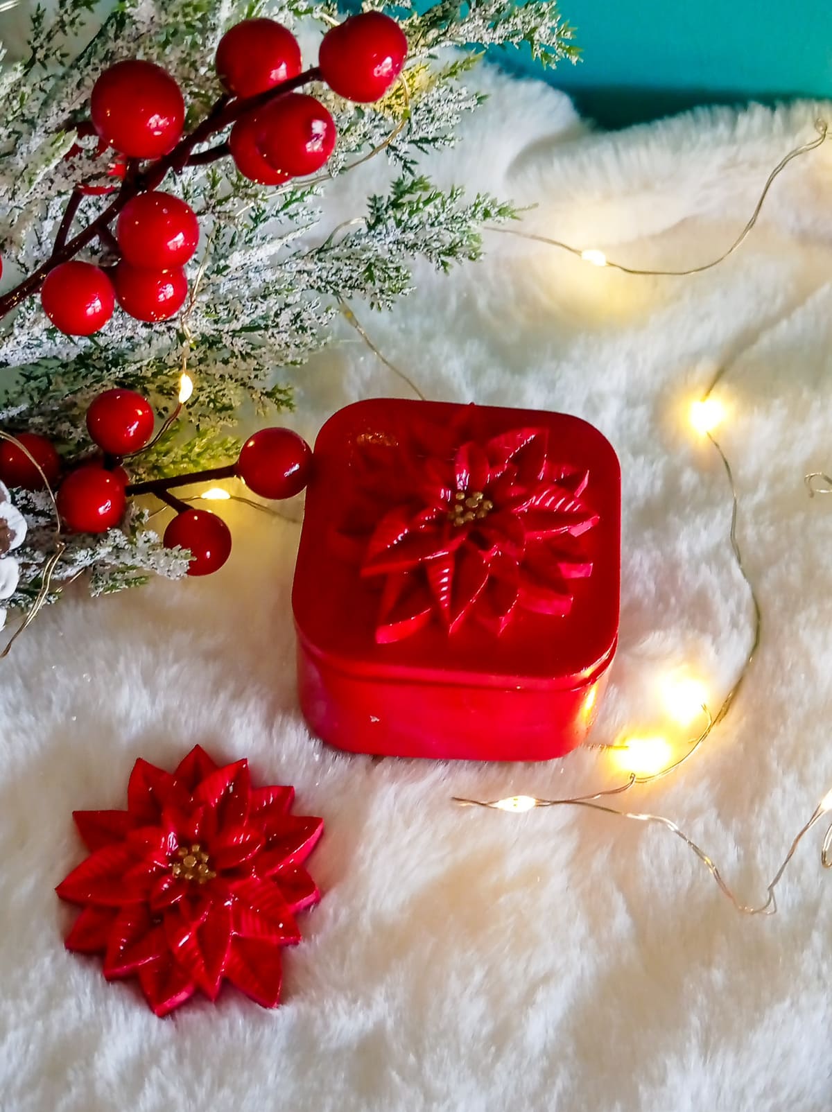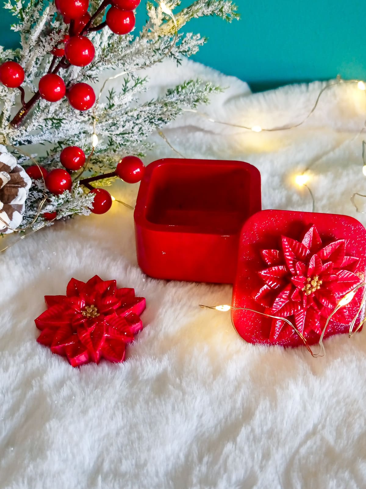χειροποίητο γιορτινό κεραμικό  δοχείο με αλεξανδρινό. Τετράγωνο χαμηλό δοχείο, βαμμένο με κόκκινο σμάλτο και διακοσμημένο με κεραμικό αλεξανδρινό.  Ιδανική πρόταση για εταιρικό ή επιχειρηματικό δώρο ή και για χριστουγεννιάτικη μπομπονιέρα.