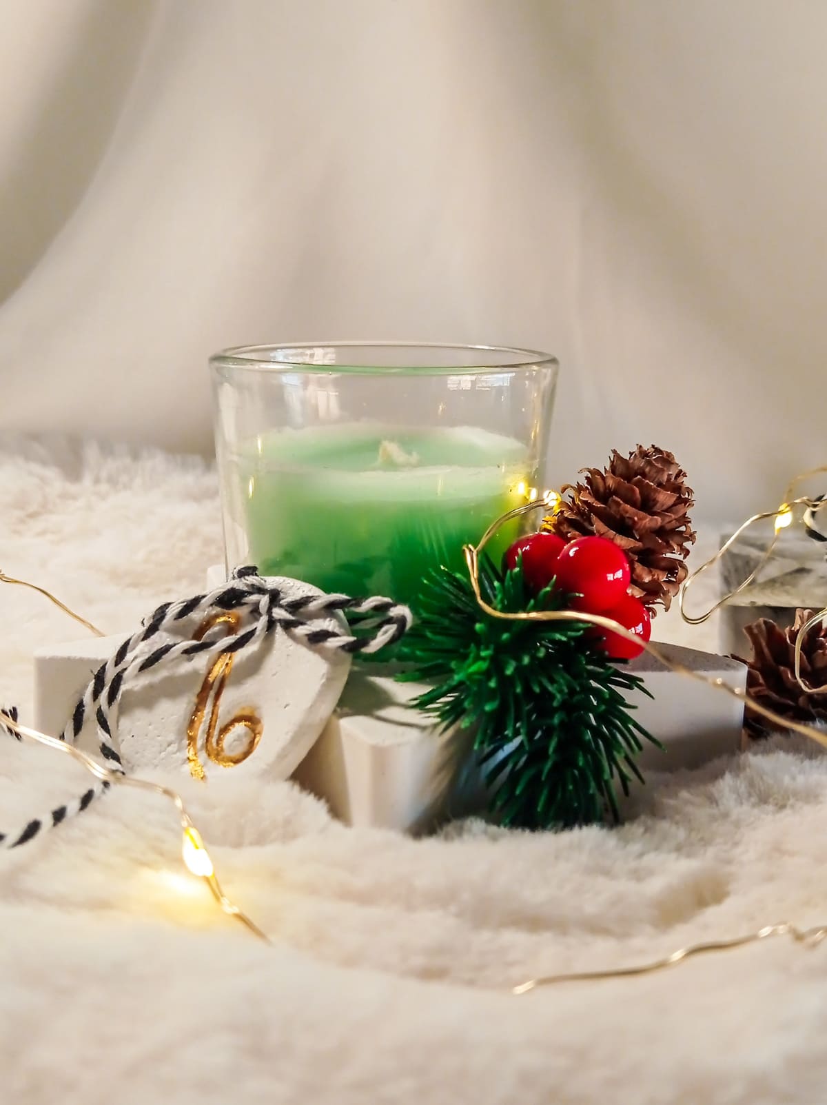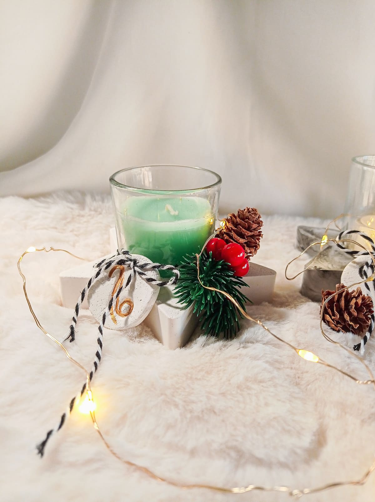 διακοσμητική χριστουγεννιάτικη βάση σε σχήμα αστεριού με γυάλινο ποτήρι για ρεσώ ή κερί. Διακοσμημένη με χριστουγεννιάτικα στοιχεία.
